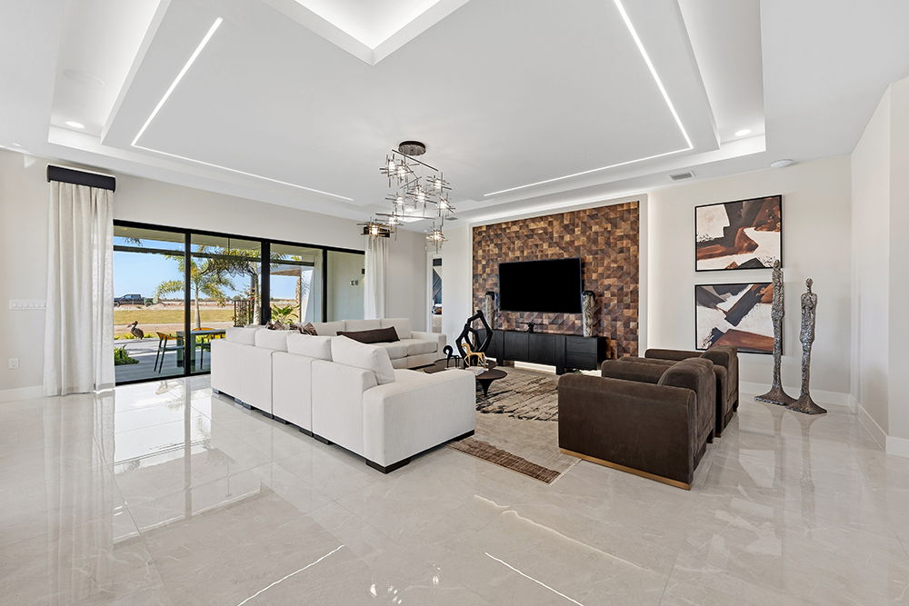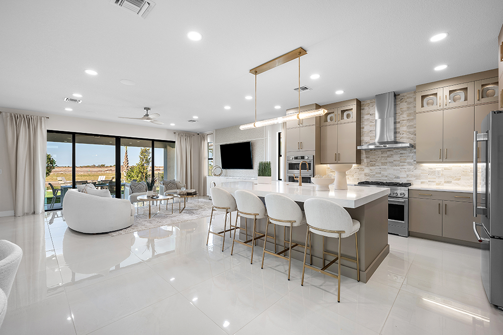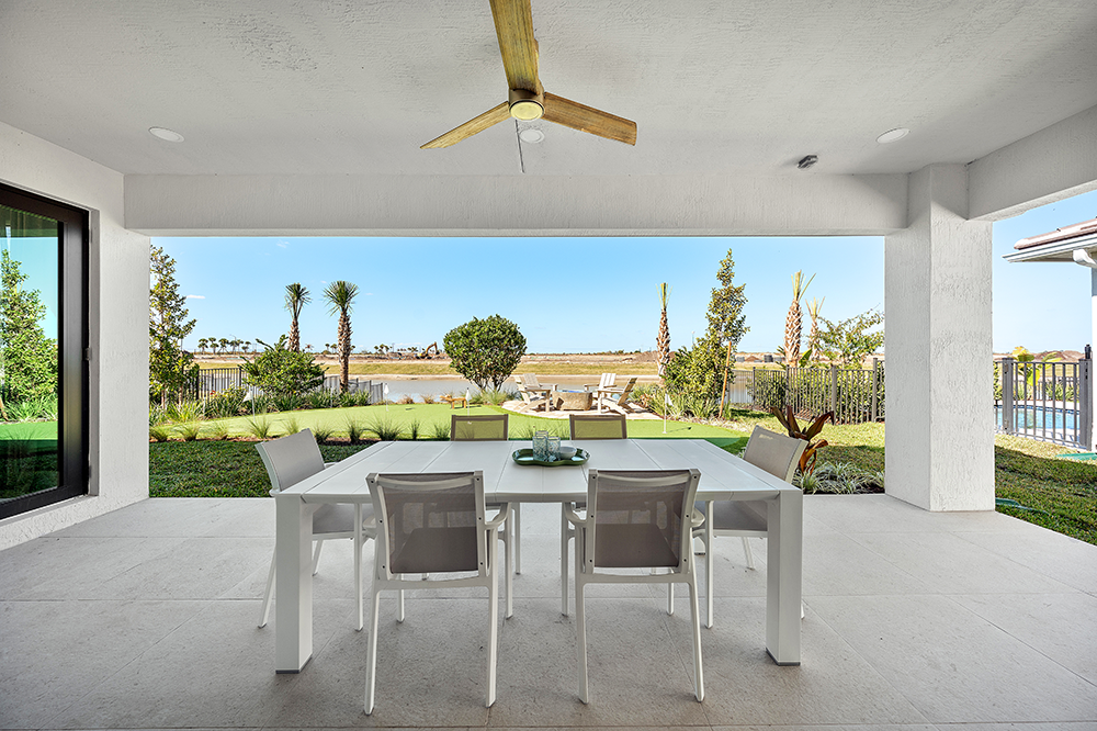 The Santa Barbara is one of the most expansive designs at Catalina Palms, featured in the community’s largest home series—the Diamond Collection. This impressive 1-story residence offers 3,188 square feet of air-conditioned living space and 4,339 total square feet, with 3–4 bedrooms, 3.5 bathrooms, and a 3-car garage designed to provide both comfort and flexibility. A thoughtfully arranged layout includes a study, breakfast area, and formal dining room, creating multiple spaces for everyday living, entertaining, or hosting guests. The home also offers the option for a fourth bedroom, allowing homeowners to tailor the design to their needs, while the screened lanai extends the living space outdoors for relaxing and enjoying Florida’s year-round climate.